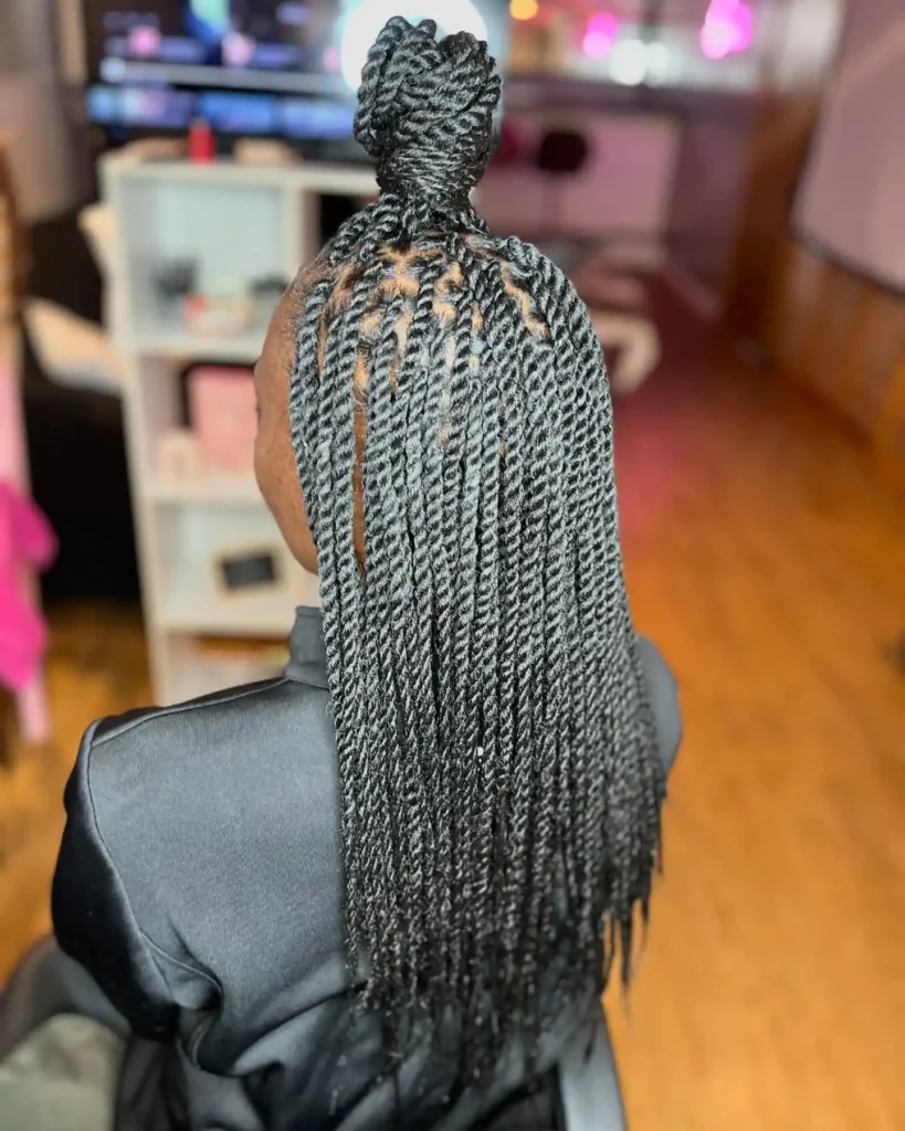 This style focuses on neat parting and even twists throughout. I like how clean and balanced it looks from every angle. The twists sit well and keep their shape for longer. It is a reliable choice if you want something timeless.