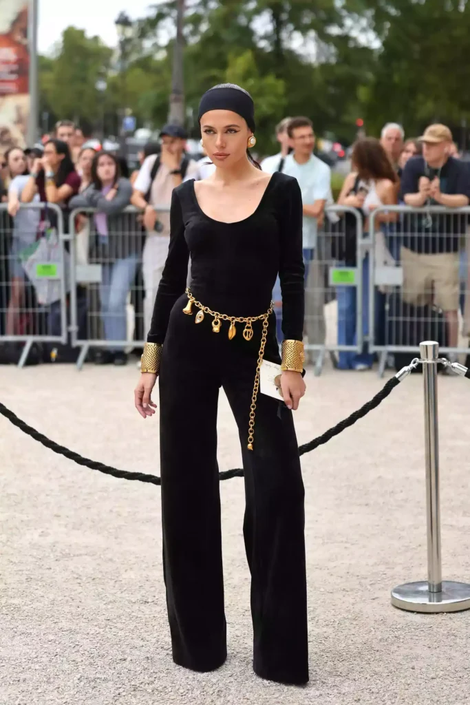 A sleek black jumpsuit is one of those reliable go-tos that always works. It’s minimalist, stylish, and makes a statement without needing much else. If you want to elevate it a bit more, add details like a chain belt, pointed heels, or layered gold jewelry. Simple updates like these give the look personality while keeping things elegant.