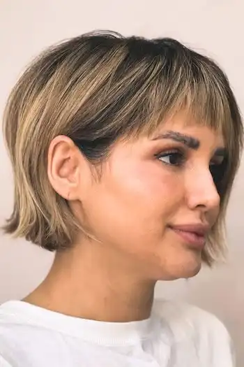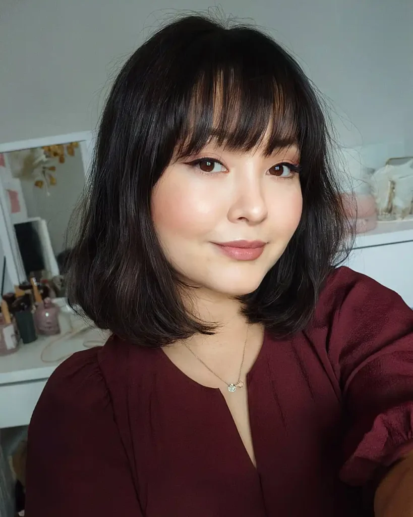 This version has a stronger outline, and that is what makes it stand out. The blunt ends give the haircut a bold feel, while the bangs keep it playful. If you like clean lines and low styling effort, this one is a solid choice. I personally like how it makes the jawline look more defined.