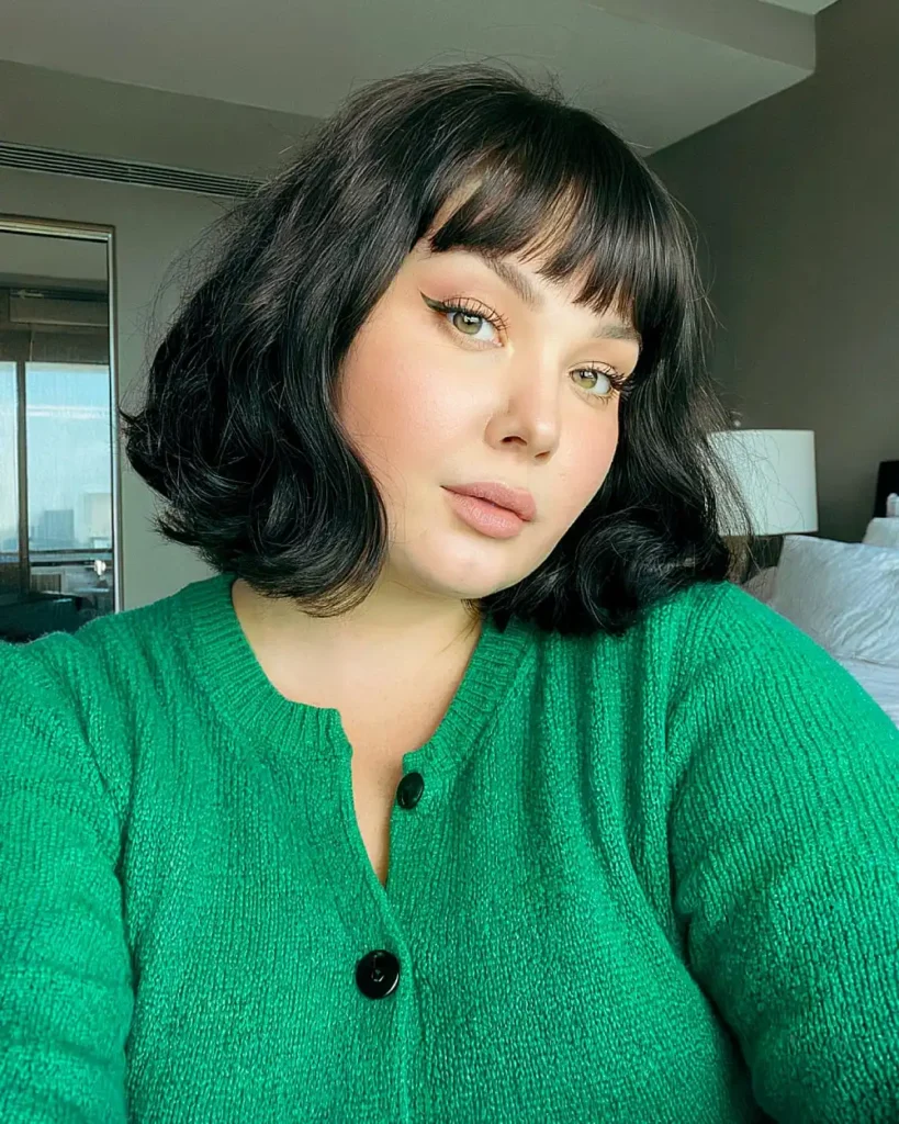 This French bob is all about embracing natural curls and texture. The bangs blend into the curls and frame the face in a soft, flattering way. It feels relaxed but still put together, which I really like about this style. It works especially well if you want volume without heavy styling.