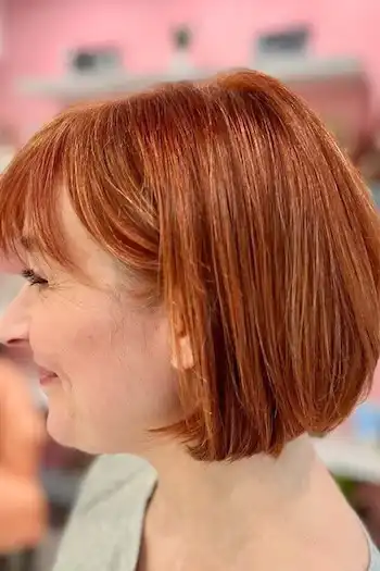 This classic French bob looks clean and softly rounded at the ends. The bangs blend nicely from the side and give the haircut a smooth flow. It feels simple but very put together. I like this style for anyone who wants a neat look that still feels natural.