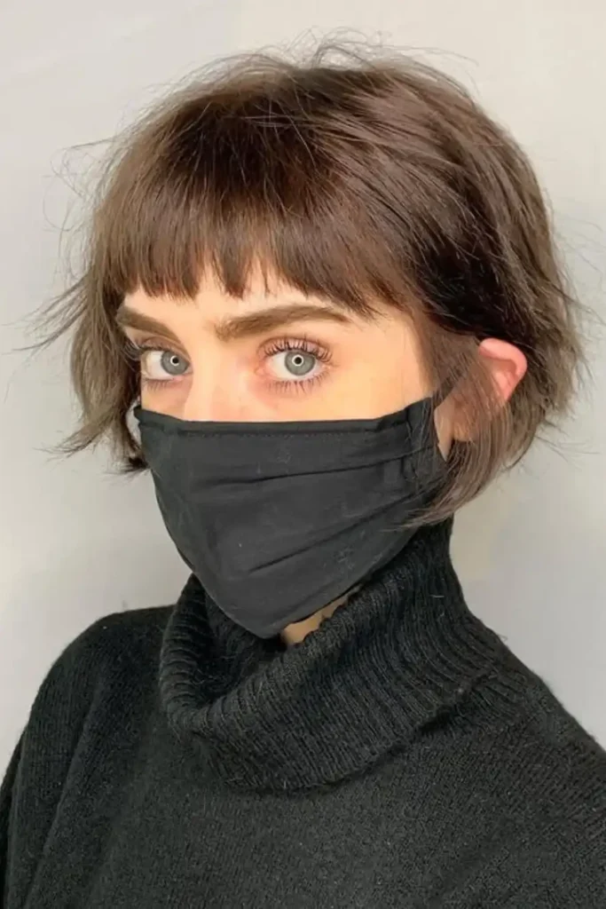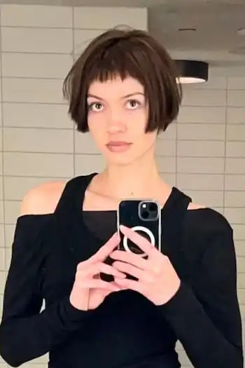 This is a bold and confident take on the French bob. The length is short and sharp, while the micro bangs give it a strong character. It is perfect if you like statement haircuts. I always see this style as fearless and fashion-forward.