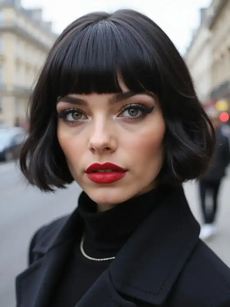 This style gives a little more length while keeping the classic French bob vibe. The full bangs draw attention to the eyes and add a soft frame to the face. It works really well for round face shapes and medium hair thickness. I like how this cut feels balanced and easy to manage.