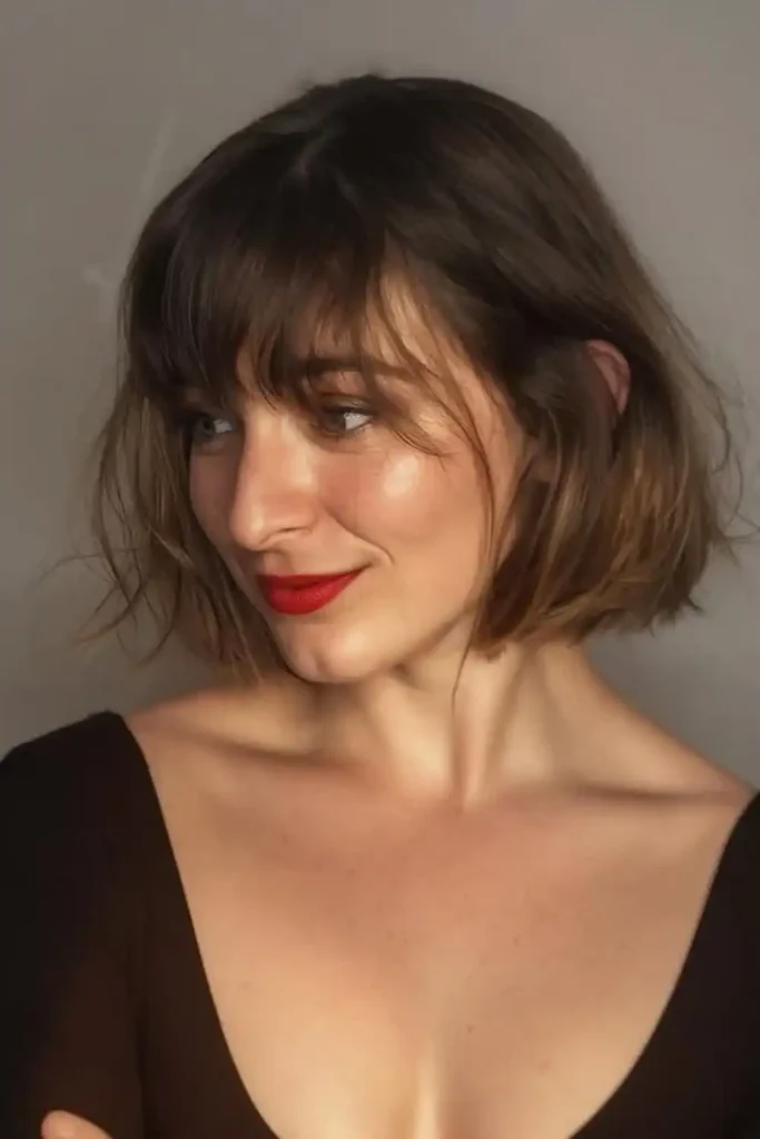 This French bob focuses on volume at the front, which gives it a playful feel. The short length keeps it fresh, while the fringe adds balance to the face. It is a good choice if your hair feels flat most of the time. I have seen this style instantly lift the overall look.