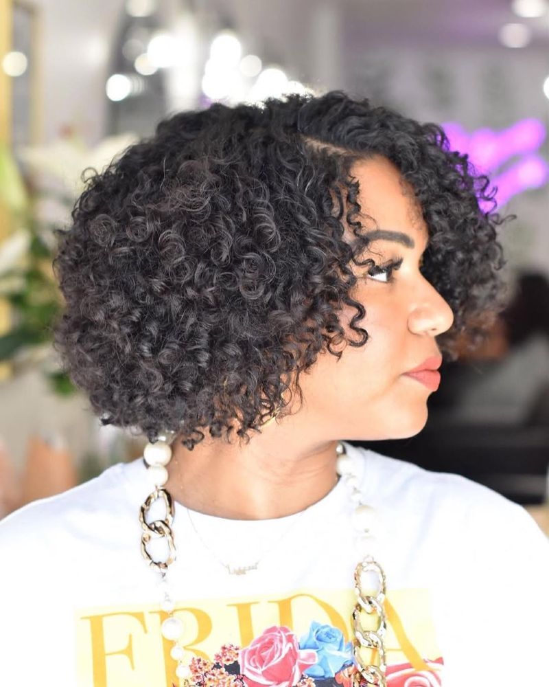 This curly layered bob is designed to let natural curls shine. The layers help define the curls and prevent the hair from looking bulky. It keeps the shape round and well balanced around the face. This style is ideal for women who want volume with a soft and confident finish.