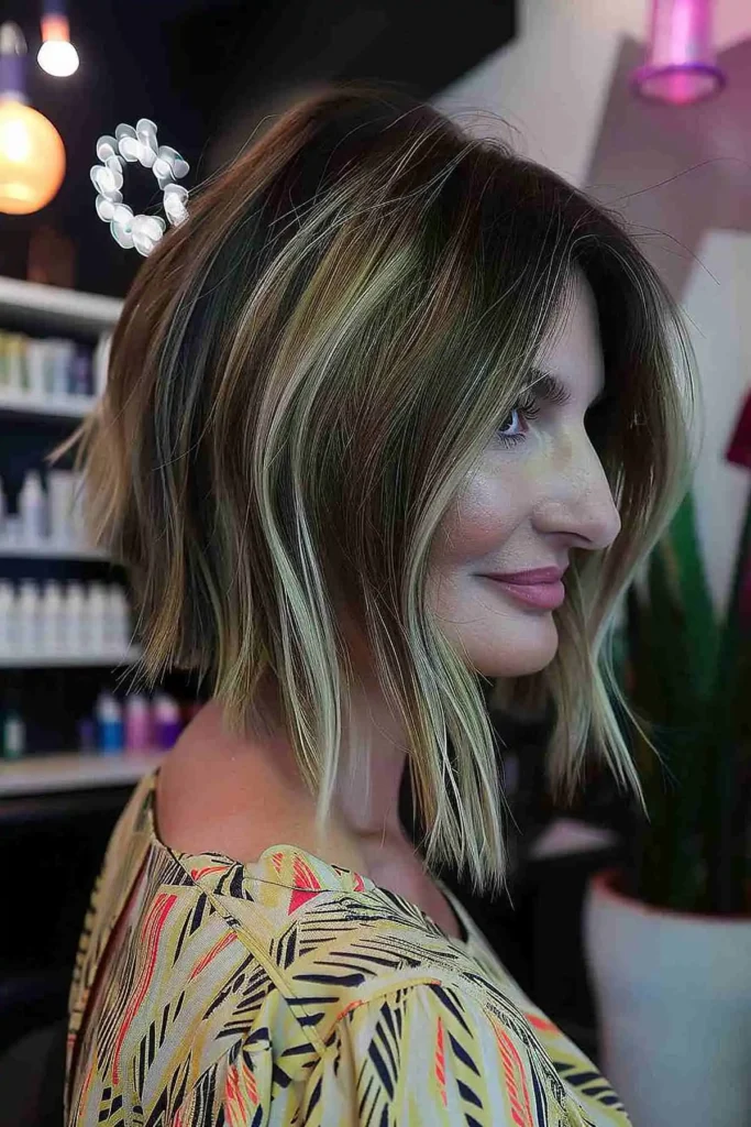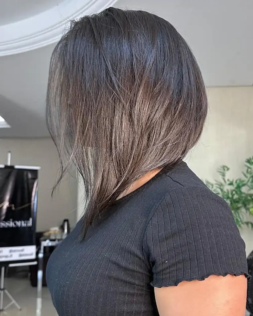 This long inverted bob stands out because of its soft highlights blended into dark brown hair. The color adds depth without taking attention away from the cut. I like how the longer front keeps the style flattering from every angle. It is a great choice if you want a fresh look without going too dramatic.