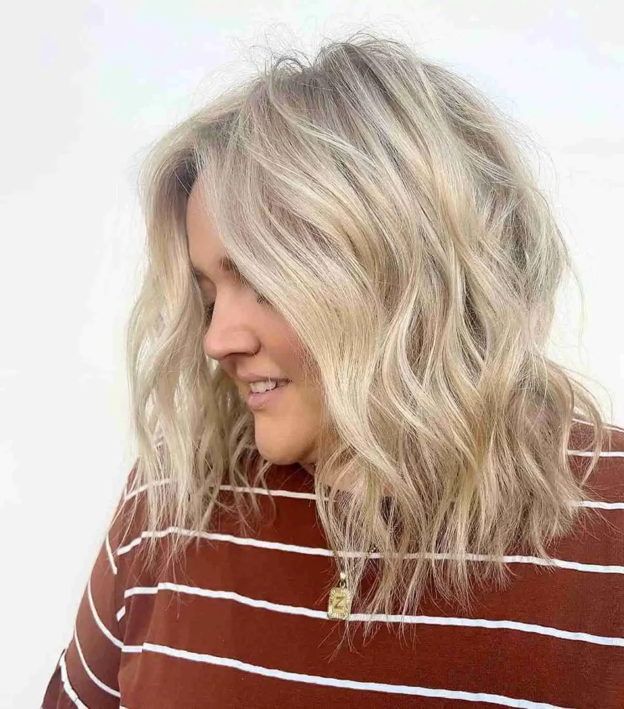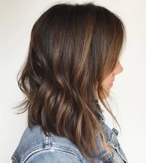 This shaggy long inverted bob has loose layers that add texture. The cut feels casual and easygoing. I like this look for days when you want effortless style. It looks great even when slightly messy.