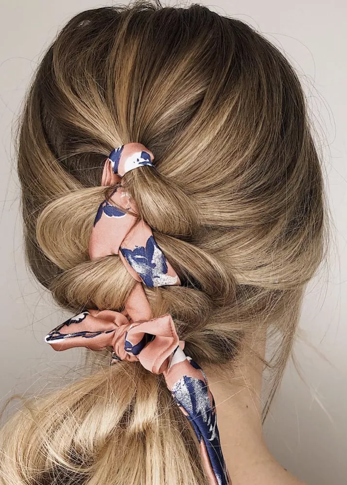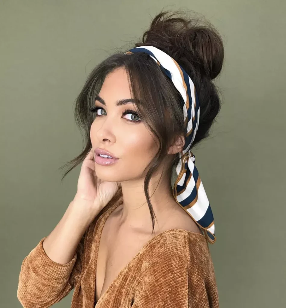 Blogger Lauren Davis calls this one of her favorite go-to looks because of how easy and versatile it is. A scarf adds instant style with minimal effort. You can watch her tutorial or follow the written steps to recreate this fuss-free bun at home. It’s a great option for mornings when you need something quick but cute.