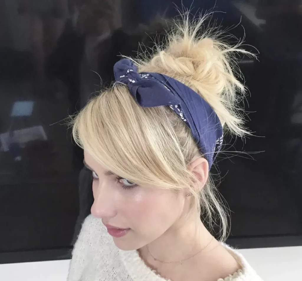 This playful style by Nikki Lee is perfect for warmer days when you want your hair up and off your neck. The look is topped with a tied bandana, giving it a relaxed, vintage-inspired touch. It’s a cute option that works whether you’re out running errands or spending time in the garden.