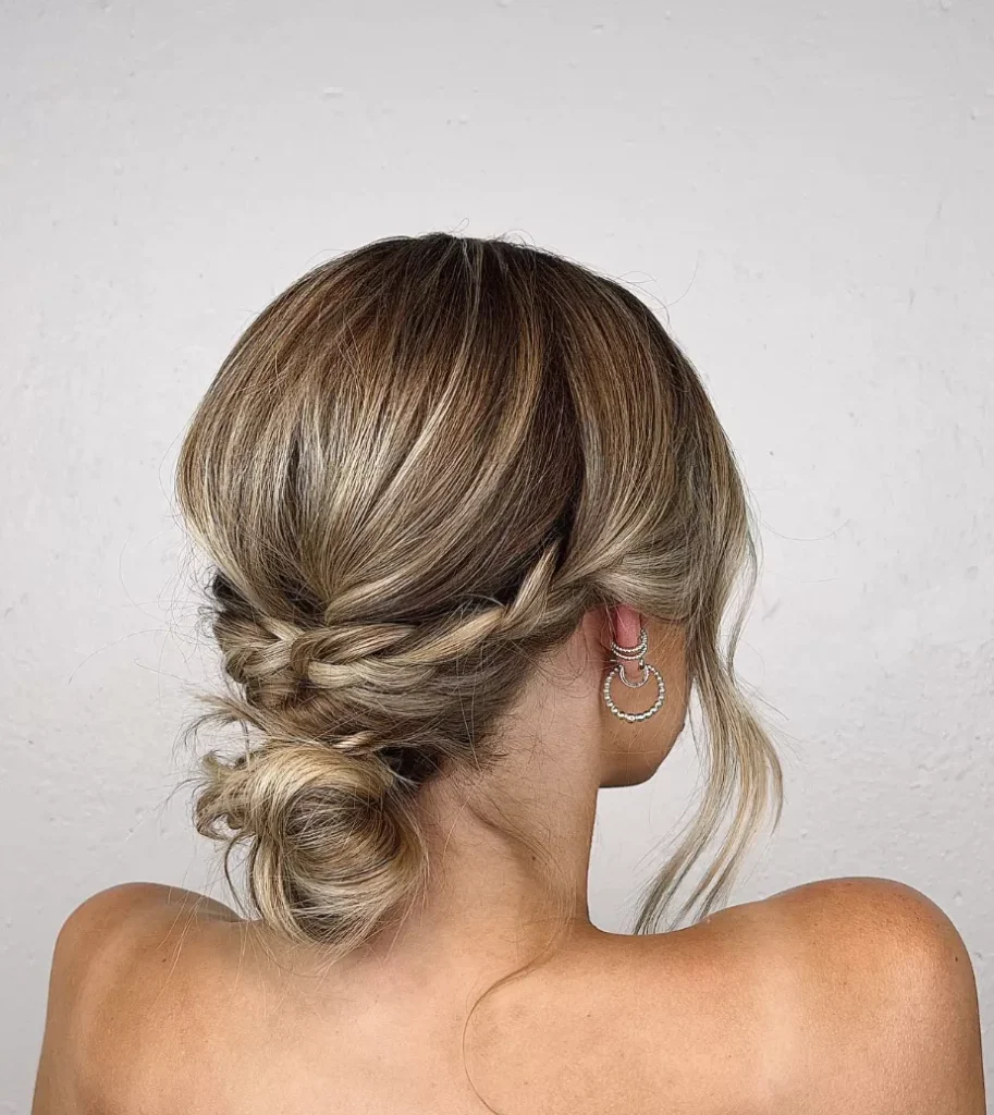 Lauren Davis shares a style that gives you a choice between a low messy bun or a ponytail finish. The wraparound braid brings extra detail that keeps the look feeling polished, even if the bun itself is laid-back. It’s one of those versatile styles that can go from casual to dressy in just a few steps.