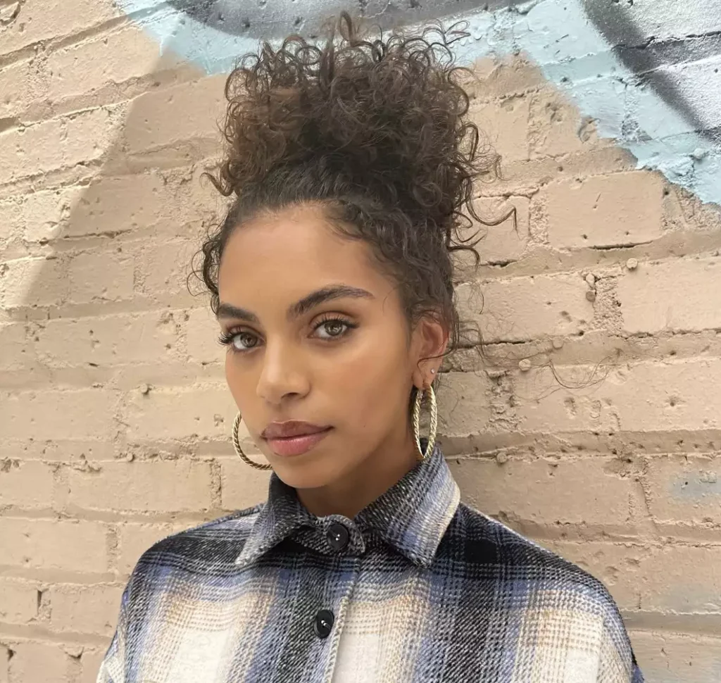 Veronica Nunez highlights her client’s natural curls with a simple top knot that lets the texture do all the work. She used products from Rizos Curls to define and enhance the curls, giving the final style volume and bounce. It’s an easy look that celebrates natural hair while keeping things playful and fresh.