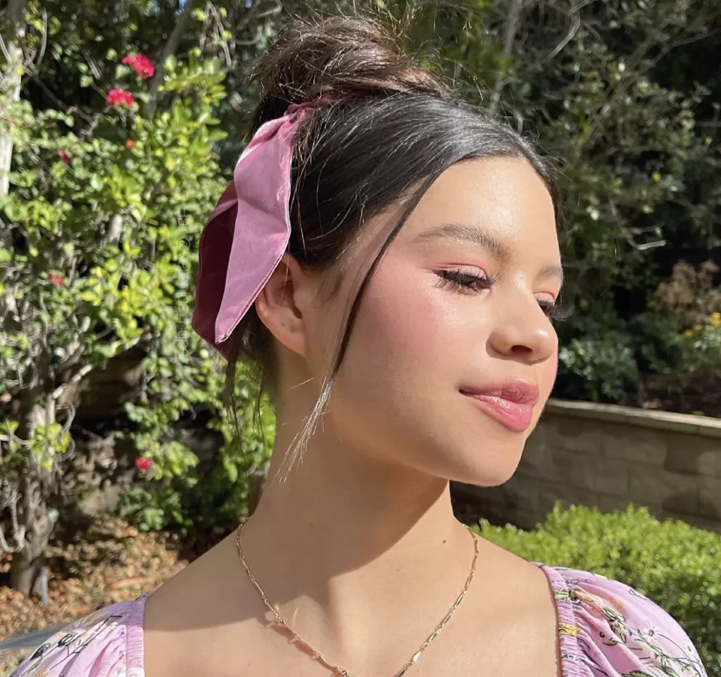 Veronica Nunez tied everything together in this look by matching the scrunchie with the client’s makeup and outfit. Inspired by the cozy, romantic cottagecore trend, this style blends comfort with intentional details. The result is a soft, rosy vibe that feels sweet and styled without looking too done.