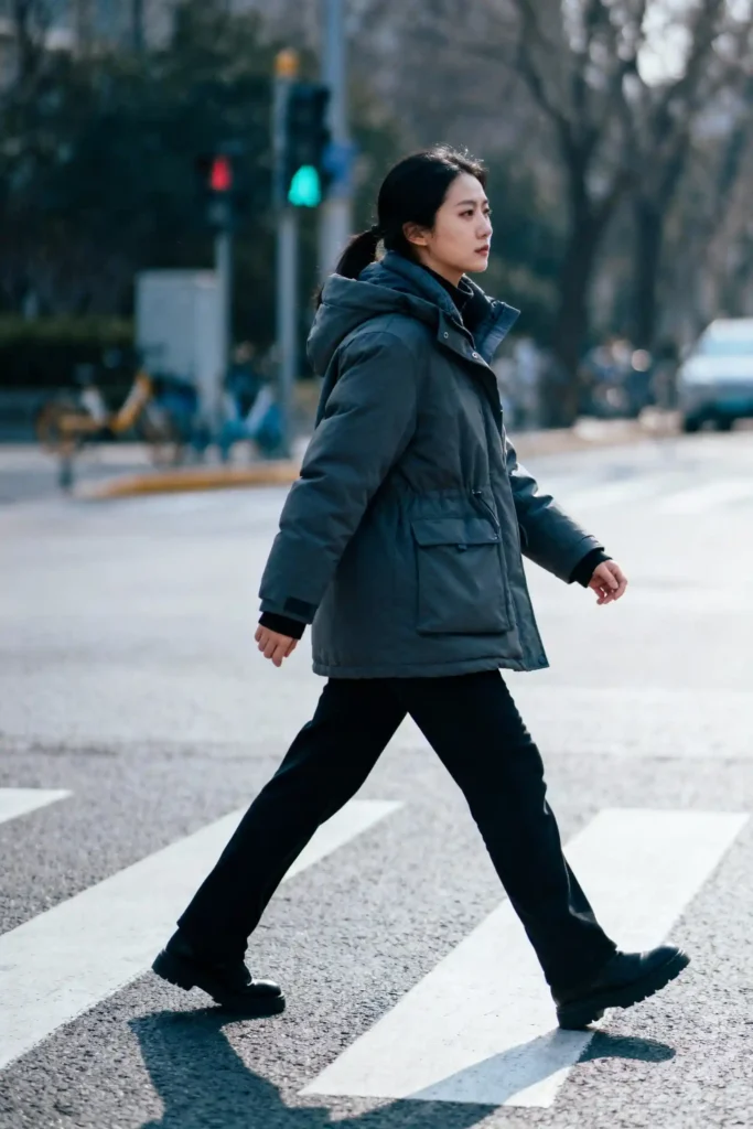 This one showed up a lot while people were walking or waiting. Jackets stayed half open, like no one wanted to feel trapped. It gave the outfit a relaxed feel even when it was clearly cold.