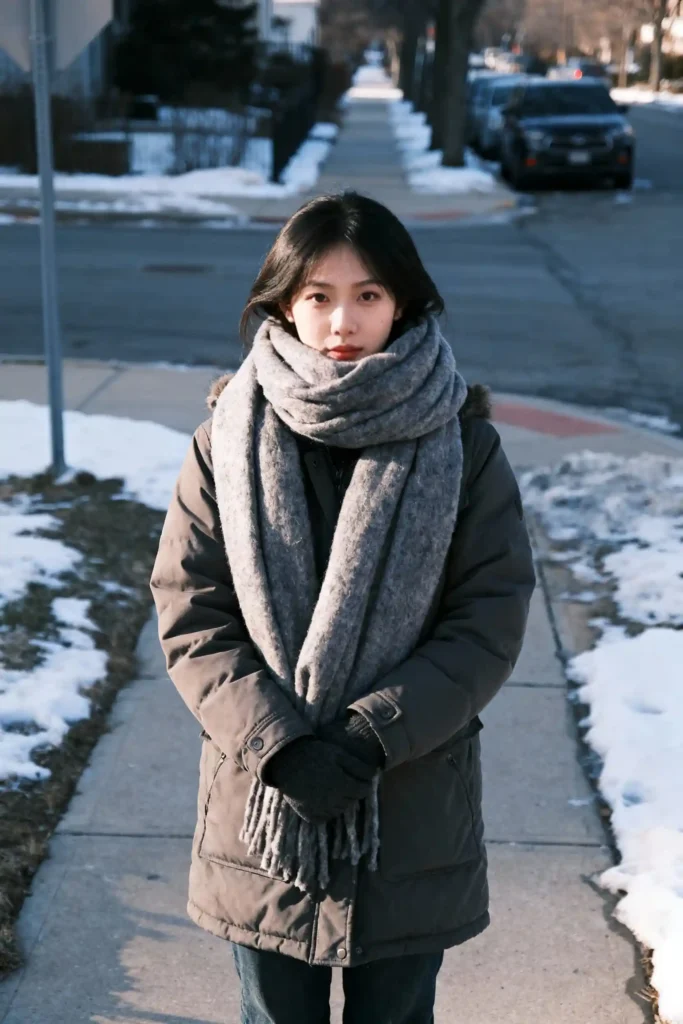 I saw scarves pulled tight, wrapped quickly, and rarely adjusted. They felt like a habit people reached for without thinking. In midsize winter outfits, the scarf looked more like protection than decoration.