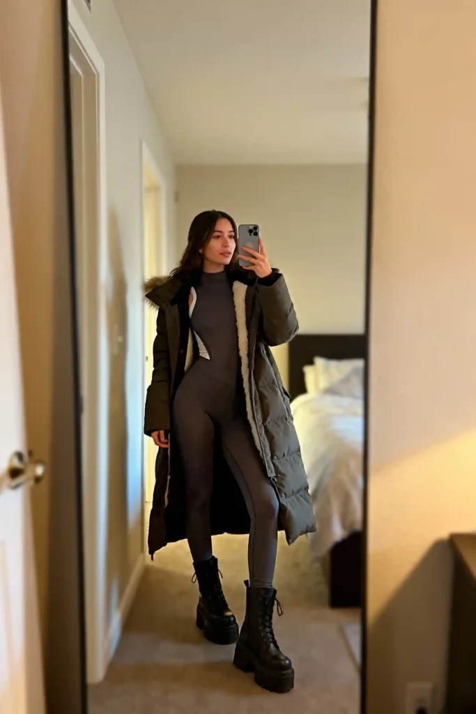 I kept noticing how many midsize winter outfits started with a long coat that stayed on indoors. People looked settled in it, like the outfit underneath did not need to prove anything. It felt more about warmth and ease than showing layers.