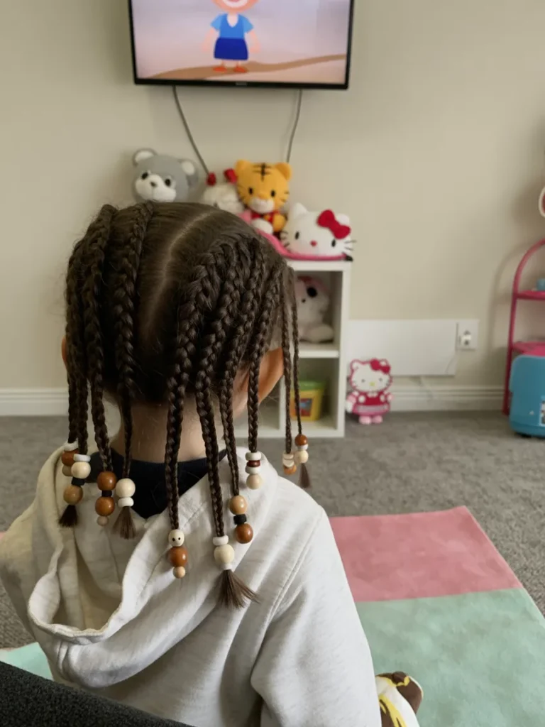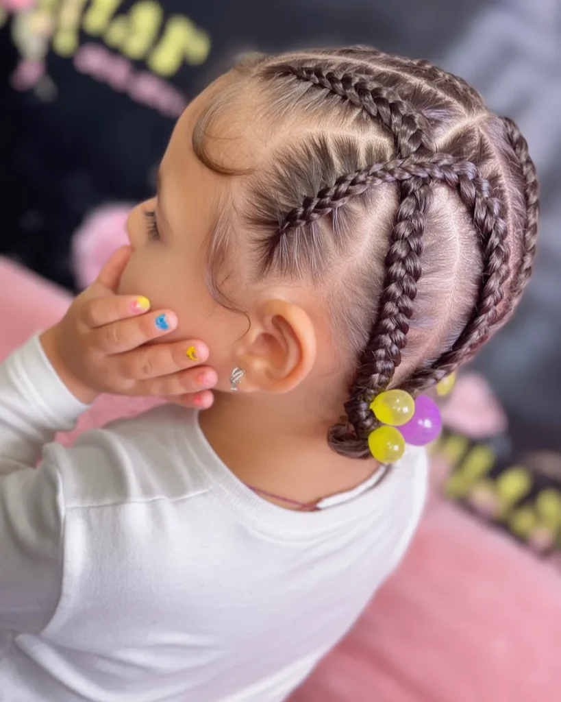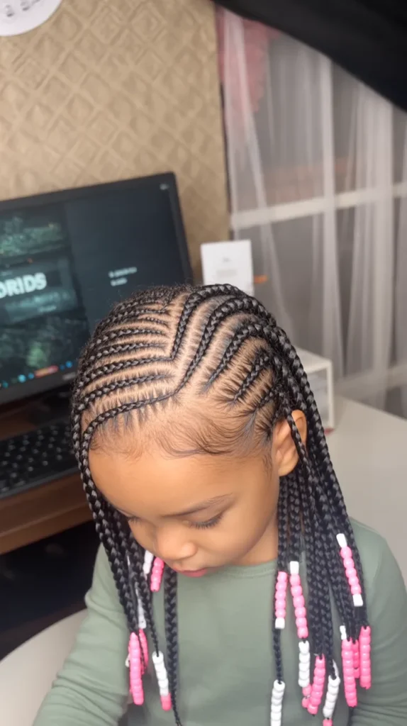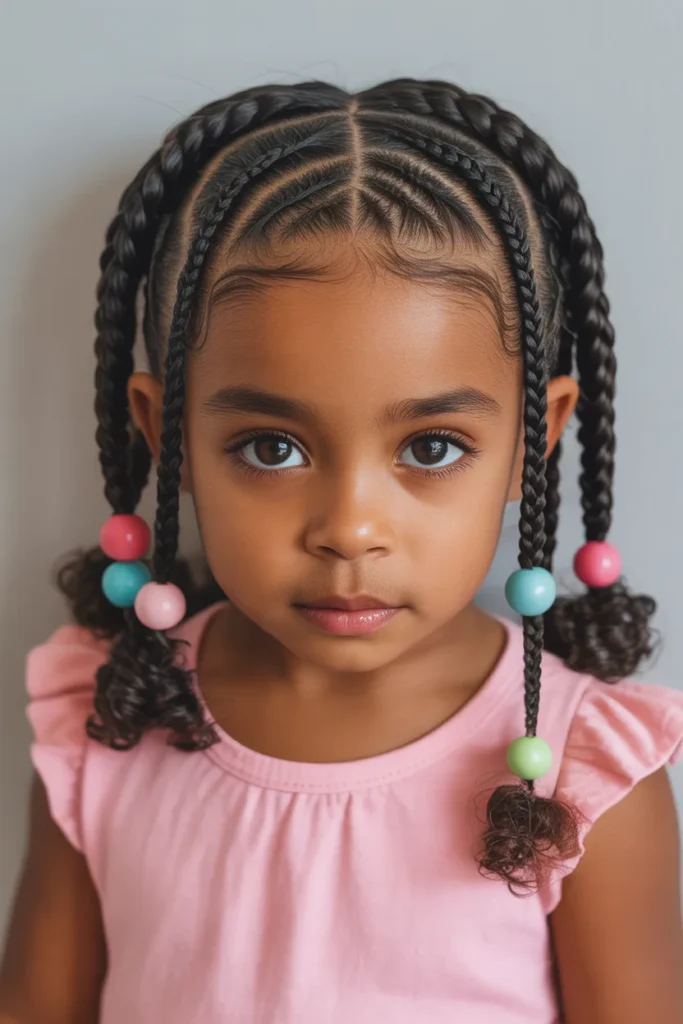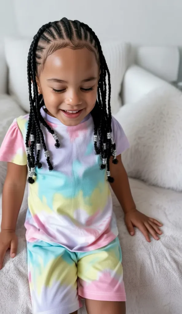 Keeping the part lines clear helps the style look fresh longer, especially when braids are done with gentle tension. Lightweight beads allow easy movement, giving your child a fun everyday look that still feels comfortable for playtime.