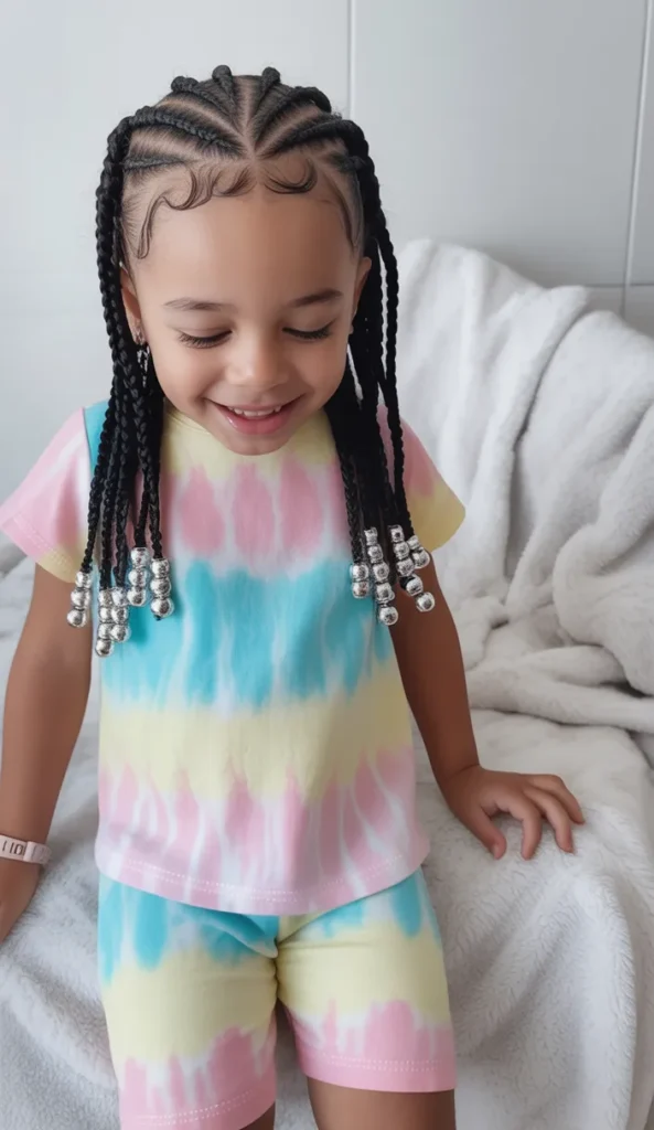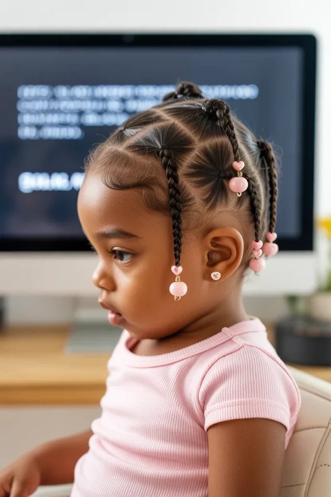 Keeping the sections evenly spaced helps the style stay balanced as your child moves around. Light accessories like small beads add charm without taking attention away from the braid design itself.