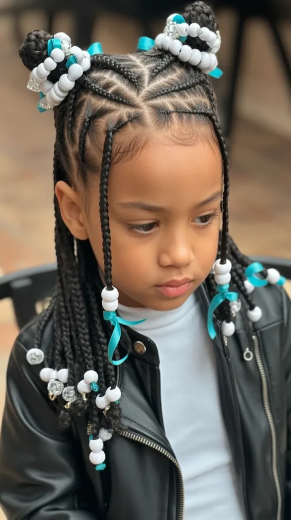 Keeping the braids soft and not too tight helps the style feel comfortable while still looking neat. Natural looking beads blend nicely with the braids and keep the overall vibe calm and child friendly.