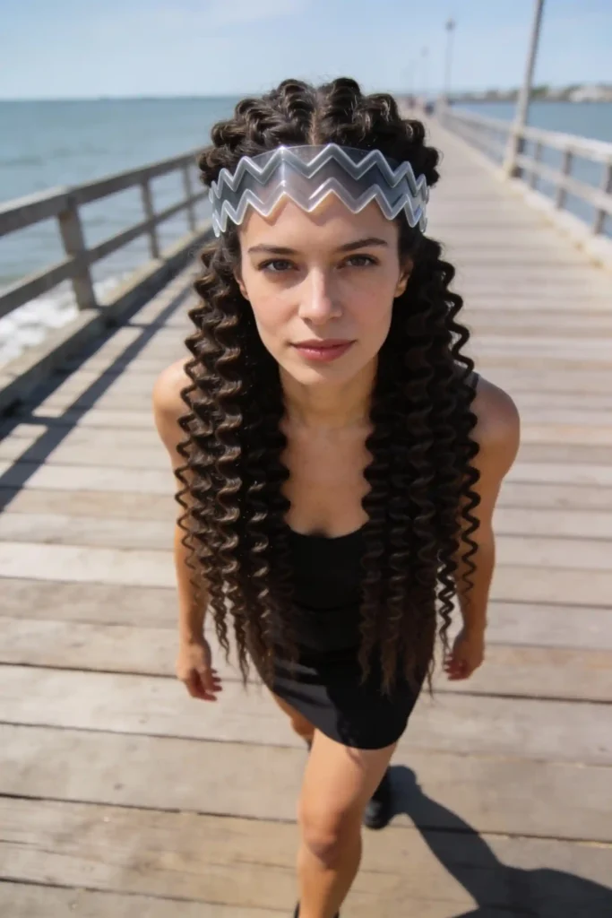 This look is the perfect mix of cute and polished. With long waves and a zig zag headband framing the front, it adds a little texture and volume without needing heat or heavy styling. You can see how the flexible plastic design hugs the head just right while keeping the hair lifted and styled in place. It’s an easy everyday option that still feels fun and trendy.