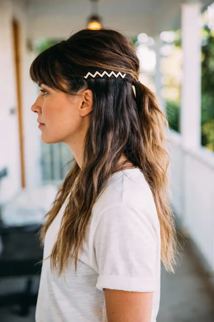 This is one of the easiest ways to make your hair feel styled without doing much at all. Pull the top half of your hair back, secure it with a clip or mini elastic, and slide in your zig zag headband. It adds just enough structure to balance out the volume and texture in the rest of your hair.