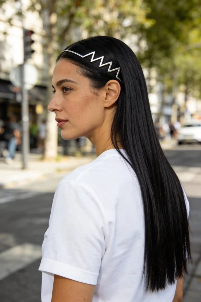 When your hair is freshly straightened and you want to keep it looking sharp, a zig zag headband adds just the right detail. It gives that little lift at the crown and keeps your strands perfectly in place. It’s a simple way to turn a basic straight style into something eye catching and cool.